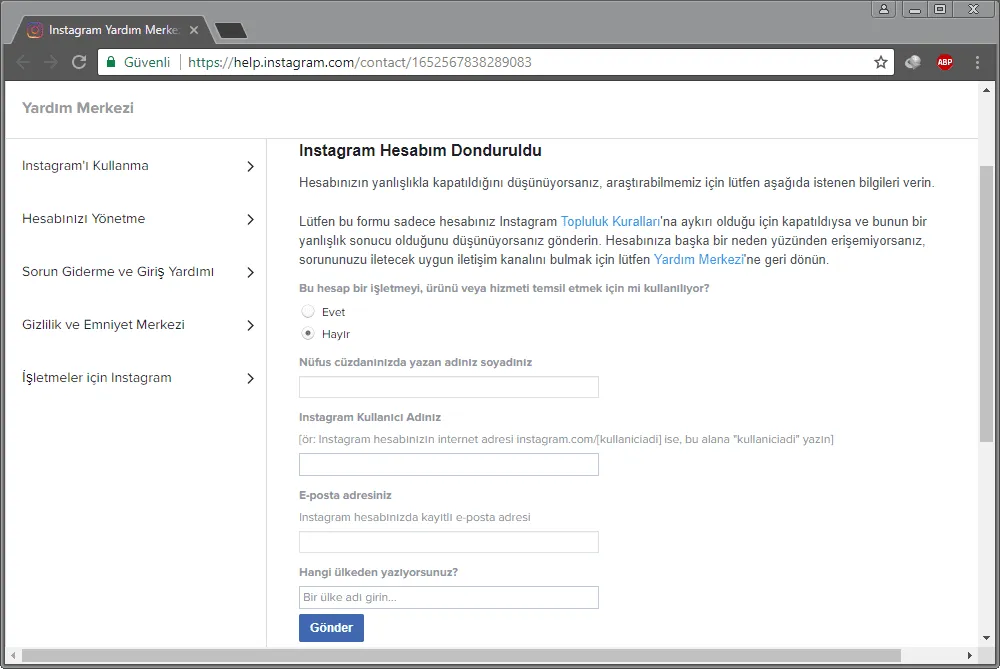 - Formu Gönderin: Tüm bilgileri doğru ve eksiksiz bir şekilde doldurduktan sonra, formu gönderin. Bu, hesabınızın durumunu gözden geçirmeleri için Instagram yetkililerine bilgi verir.